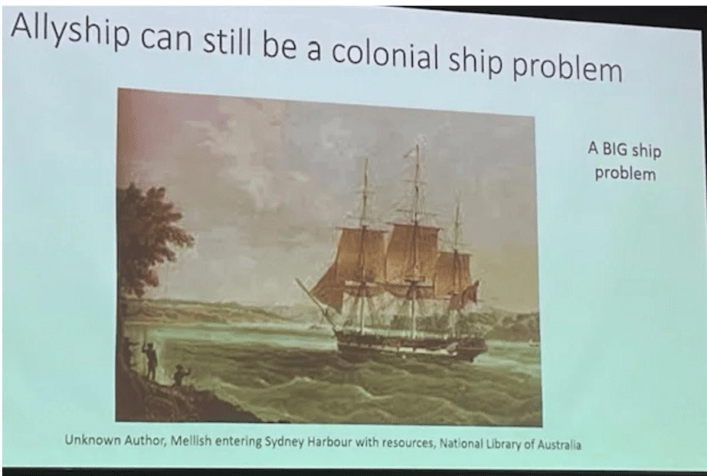 “Allyship is still based in a colonial framework… When allyship is defined by non-Indigenous peoples shaped by a person in a position of advantage, it is an othering process. Why are allies defining allyship?”