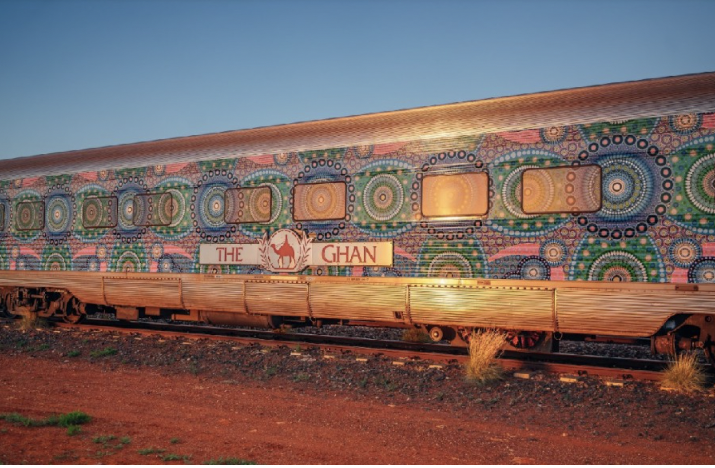 Chantelle Mulladad’s artwork is the largest display ever featured on the Ghan. Photograph: NTMEC.